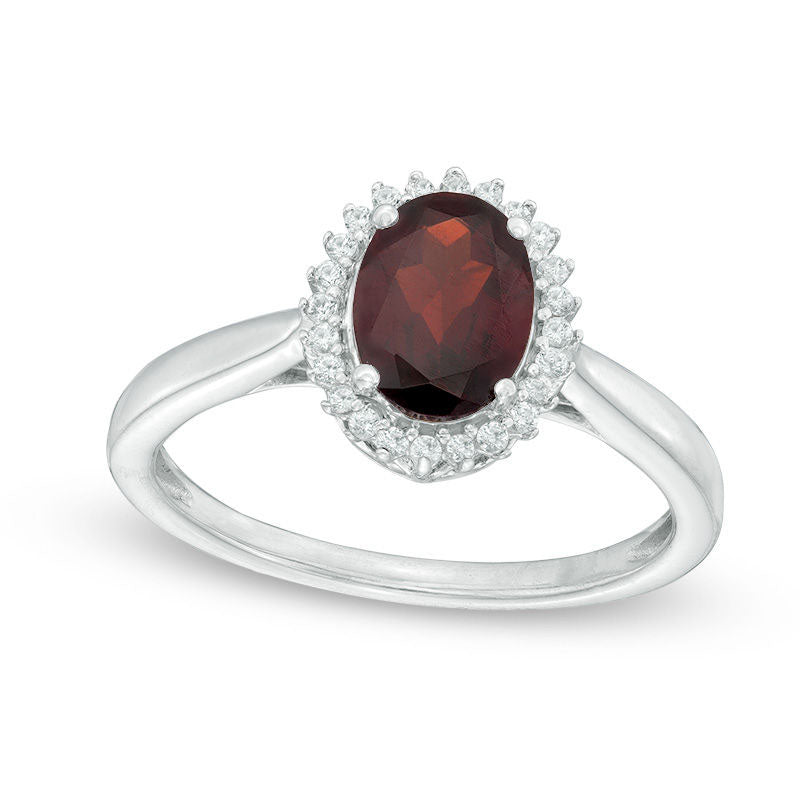 Oval Garnet and Lab-Created White Sapphire Frame Ring in Solid 10K White Gold