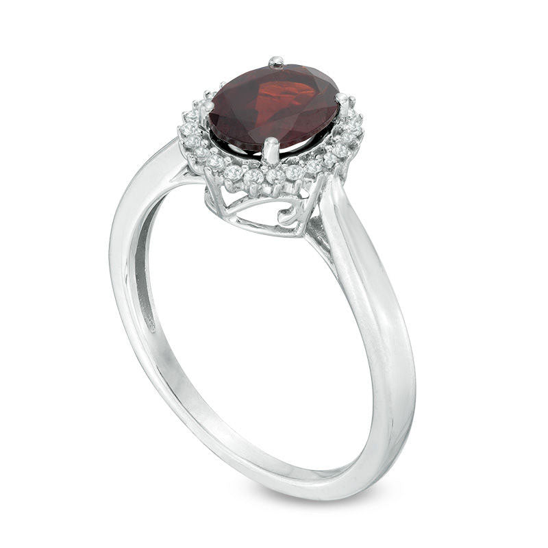This stunning ring is the perfect way to show your love to someone born in January. Made with high-quality 10K white gold, it boasts a breathtaking oval-shaped garnet at its center, surrounded by a halo of dazzling lab-created white sapphires. Delicately detailed filigree patterns add depth to the design, while a gently tapered shank completes the elegant look. Shining with a gorgeous polished finish, this ring is a beautiful and meaningful gesture of affection that will be treasured for years to come.
