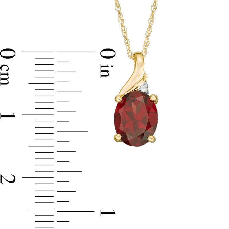 Oval Garnet and Natural Diamond Accent Swirl Top Pendant in 10K Yellow Gold