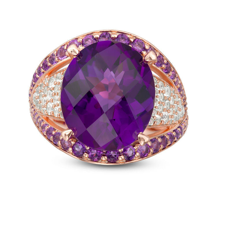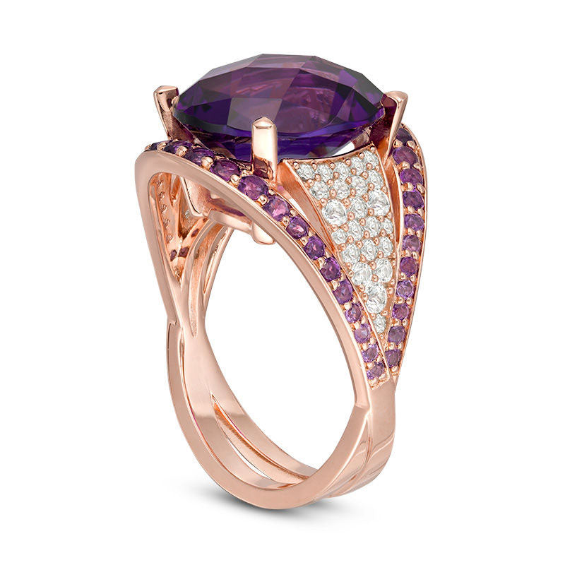 Oval Lab-Created Amethyst and White Sapphire Crossover Ring in Sterling Silver with Solid 14K Rose Gold Plate
