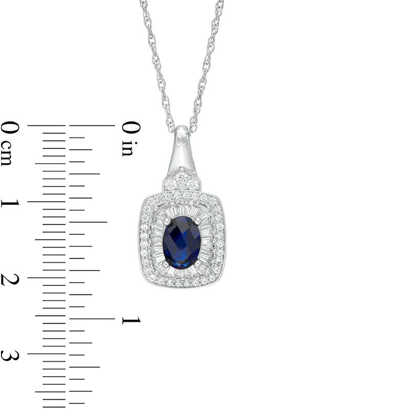 Oval Lab-Created Blue and White Sapphire Cushion Frame Pendant in Sterling Silver