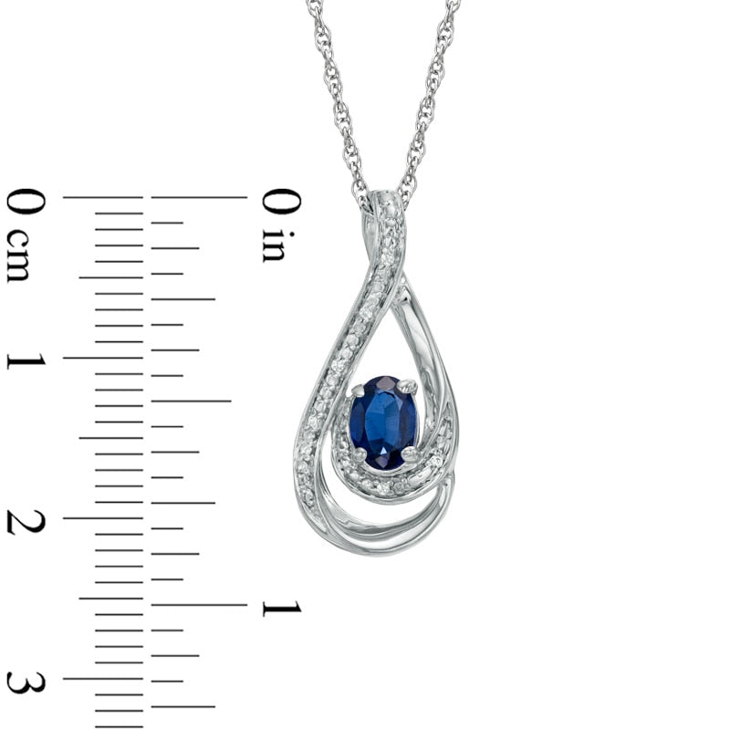Oval Lab-Created Blue Sapphire and Diamond Accent Loop Pendant in Sterling Silver