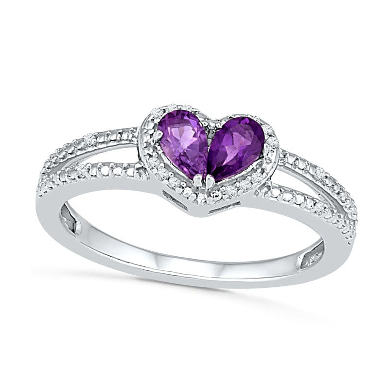Pear-Shaped Amethyst and 0.05 CT. T.W. Natural Diamond Frame Ring in Solid 10K White Gold