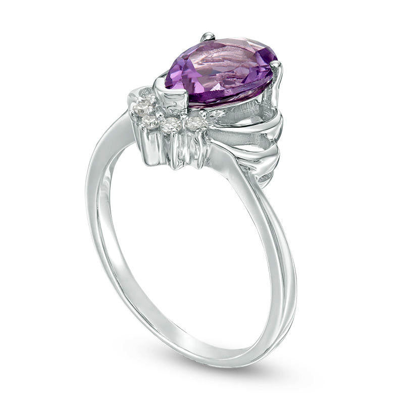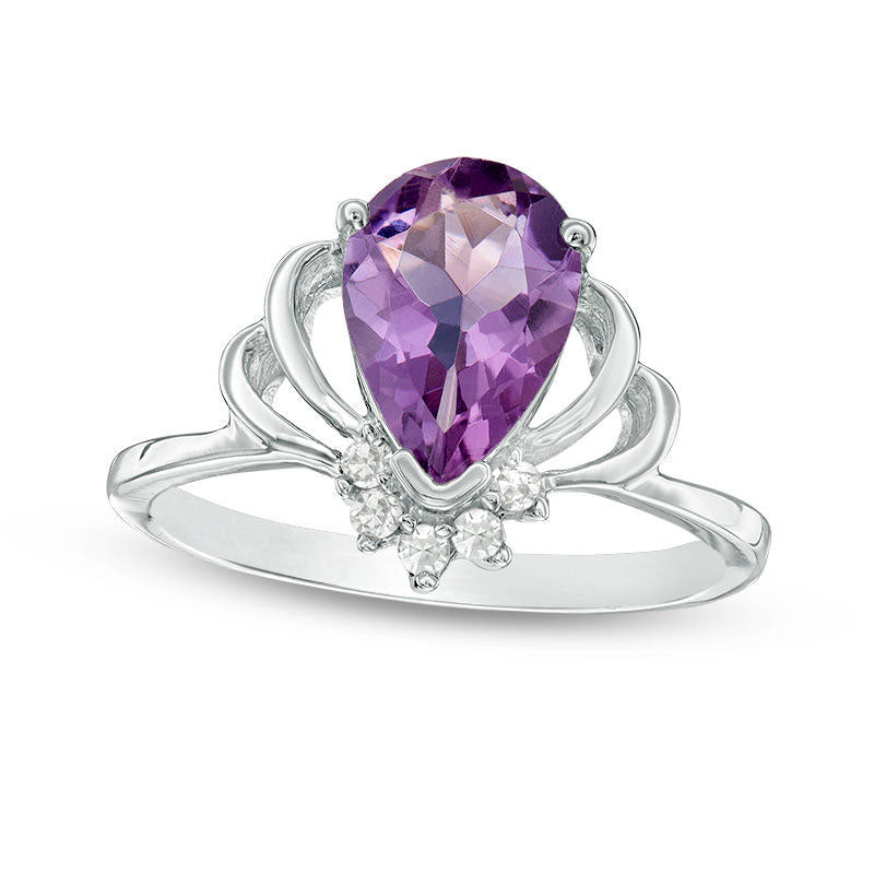 Pear-Shaped Amethyst and 0.07 CT. T.W. Natural Diamond Crown Ring in Sterling Silver