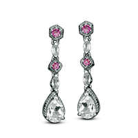 Pear-Shaped Lab-Created White and Pink Sapphire Vintage-Style Drop Earrings in Sterling Silver