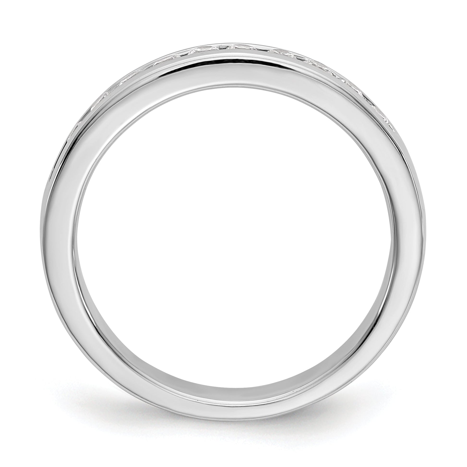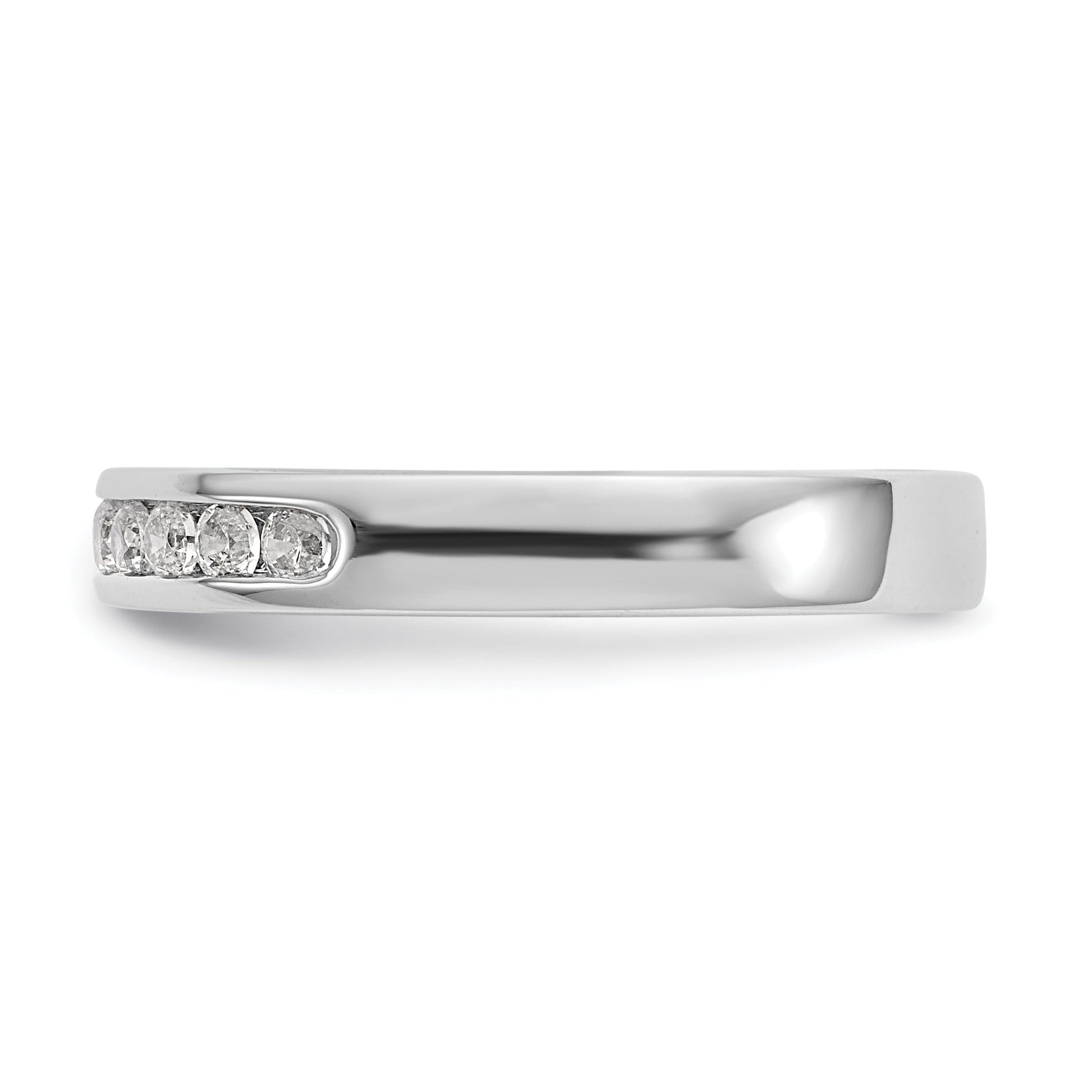 The Platinum 11-Stone 1/3 Carat Round Diamond Complete Channel Band offers timeless style with a modern touch. Made from pure platinum, it pairs strength with elegance. The ring features 11 round-cut diamonds, each 1.9 mm wide, totaling 0.03 carats. The diamonds are natural and clear, with slight inclusions for character. This wedding band fits sizes 6 to 8 and can be adjusted for a perfect fit. Its sleek design and sparkling stones make it ideal for everyday wear or special moments. The Platinum 11-Stone 1/3 Carat Round Diamond Complete Channel Band is a bold choice that shines bright in any collection.