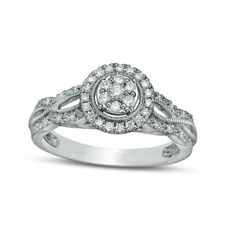 Previously Owned - 0.25 CT. T.W. Composite Natural Diamond Frame Twist Shank Antique Vintage-Style Engagement Ring in Solid 10K White Gold