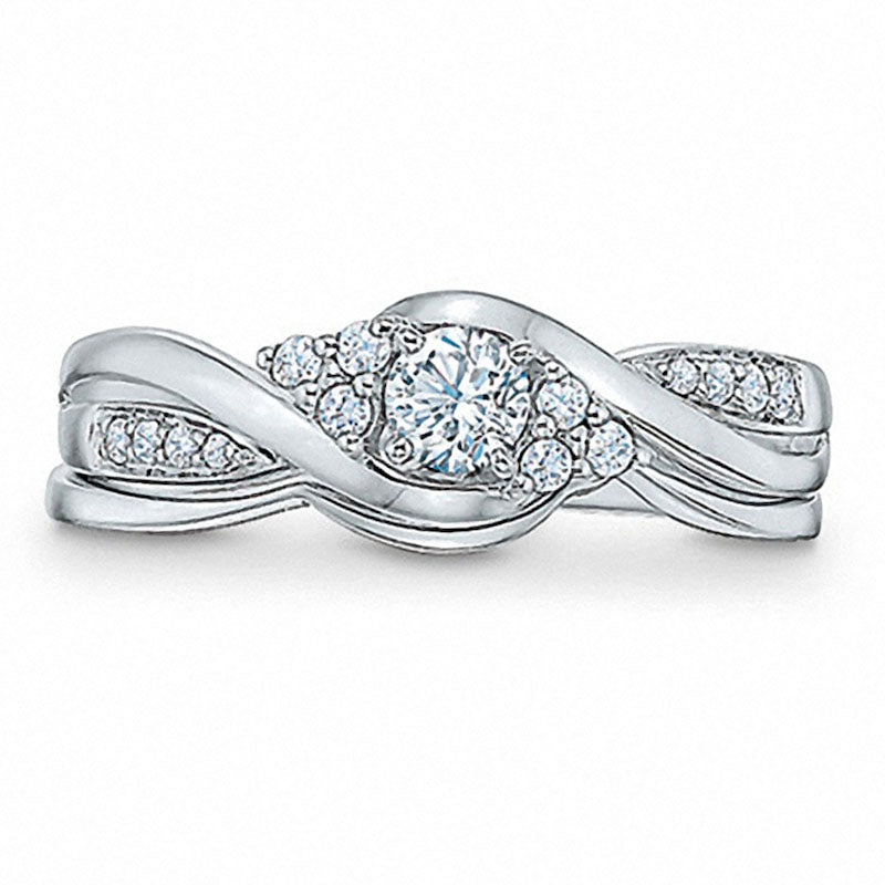 Previously Owned - 0.33 CT. T.W. Natural Diamond Bypass Bridal Engagement Ring Set in Solid 10K White Gold