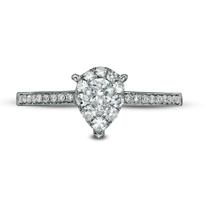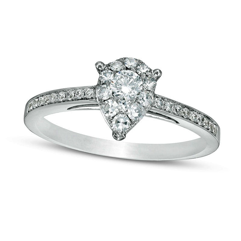 Previously Owned - 0.38 CT. T.W. Natural Diamond Teardrop-Shape Frame Engagement Ring in Solid 14K White Gold