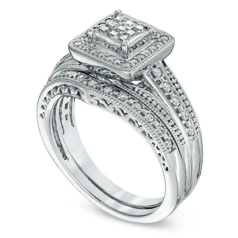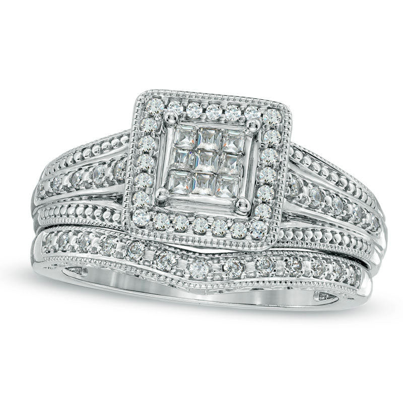 Previously Owned - 0.38 CT. T.W. Princess-Cut Composite Natural Diamond Frame Bridal Engagement Ring Set in Solid 10K White Gold