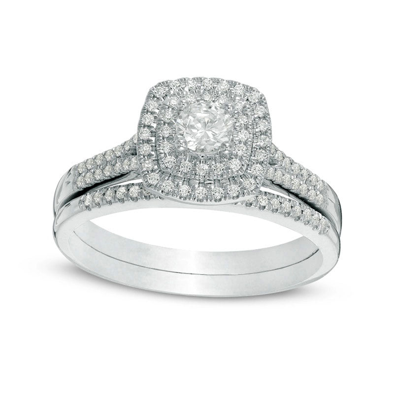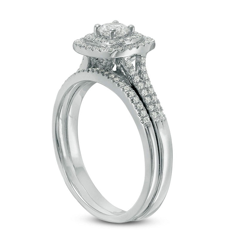 Previously Owned - 0.50 CT. T.W. Canadian Natural Diamond Double Cushion Frame Bridal Engagement Ring Set in Solid 14K White Gold