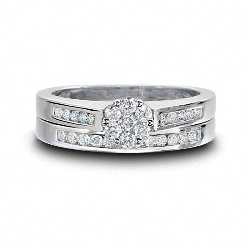 Previously Owned - 0.50 CT. T.W. Natural Diamond Flower Bridal Engagement Ring Set in Solid 14K White Gold