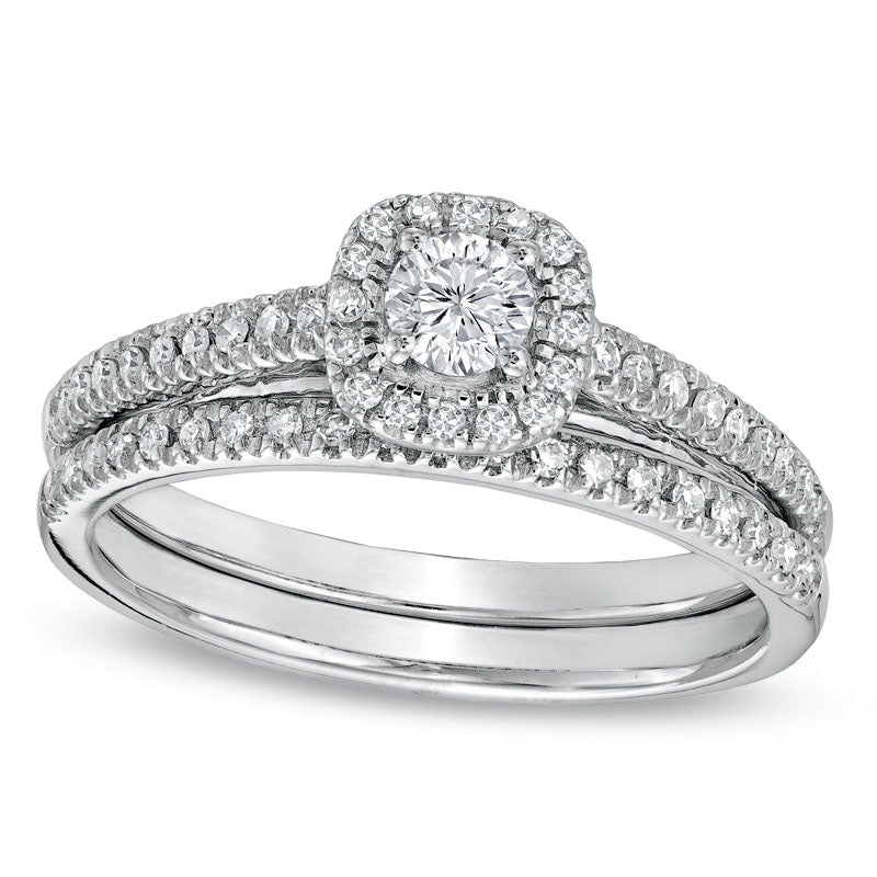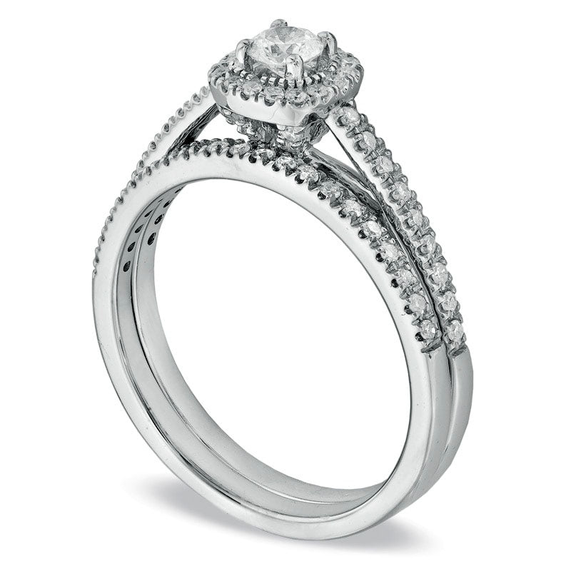 Previously Owned - 0.50 CT. T.W. Natural Diamond Frame Bridal Engagement Ring Set in Solid 14K White Gold