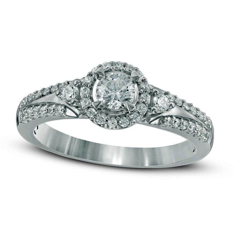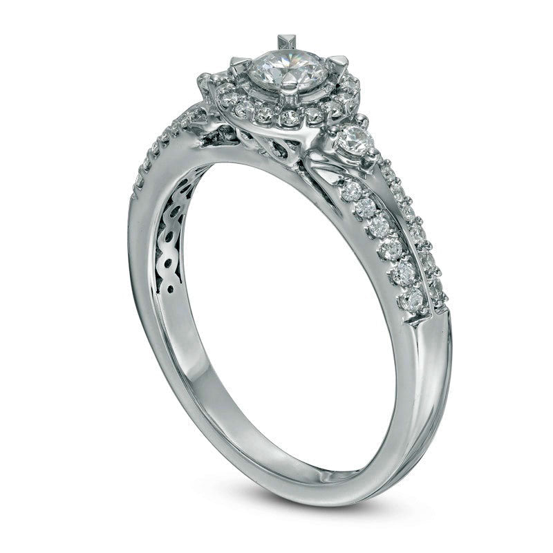 Previously Owned - 0.50 CT. T.W. Natural Diamond Frame Engagement Ring in Solid 10K White Gold