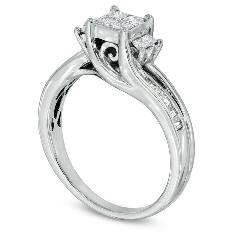 Previously Owned - 0.50 CT. T.W. Quad Princess-Cut Natural Diamond Engagement Ring in Solid 10K White Gold