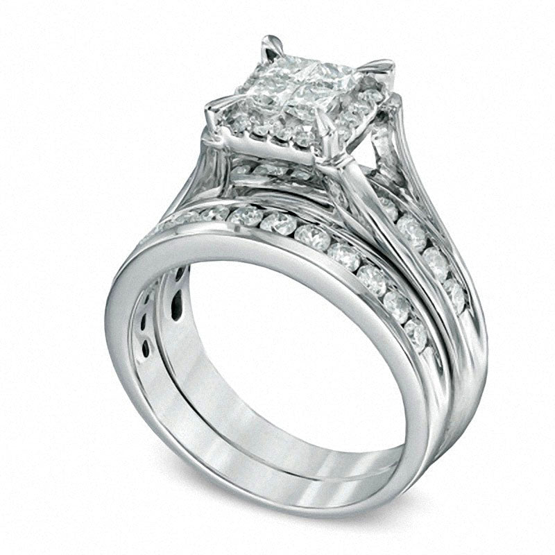 Previously Owned - 1.5 CT. T.W. Quad Princess-Cut Natural Diamond Bridal Engagement Ring Set in Solid 14K White Gold