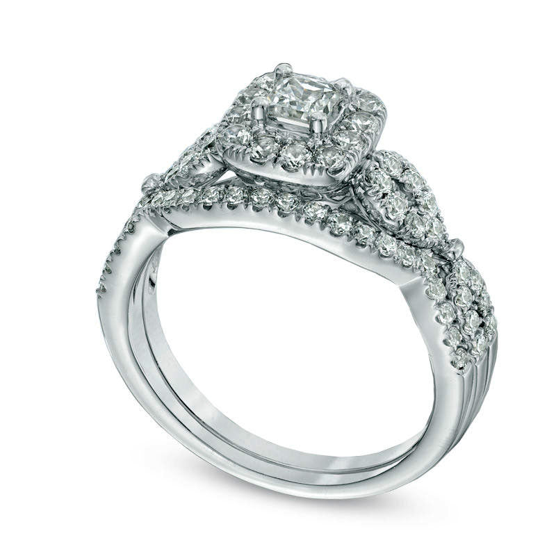 Previously Owned - 1.0 CT. T.W. Princess-Cut Natural Diamond Frame Twist Bridal Engagement Ring Set in Solid 14K White Gold