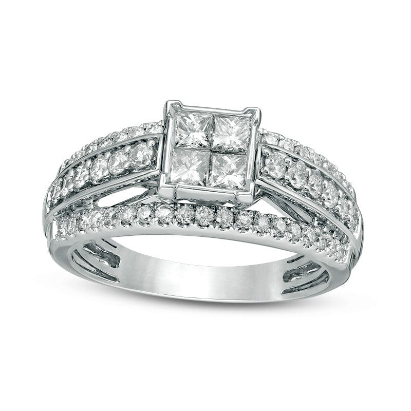 Previously Owned - 1.0 CT. T.W. Quad Princess-Cut Natural Diamond Three Row Engagement Ring in Solid 14K White Gold