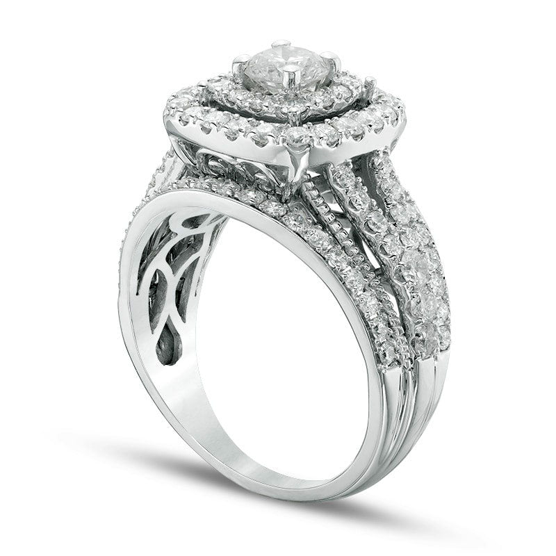 Previously Owned - 2.0 CT. T.W. Composite Natural Diamond Multi-Row Antique Vintage-Style Engagement Ring in Solid 14K White Gold