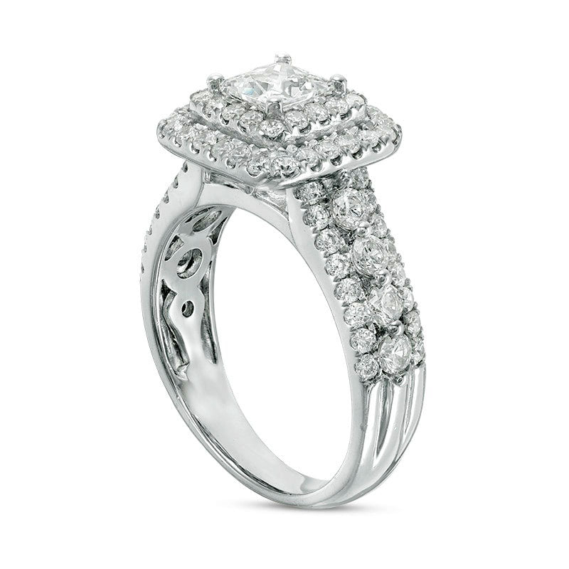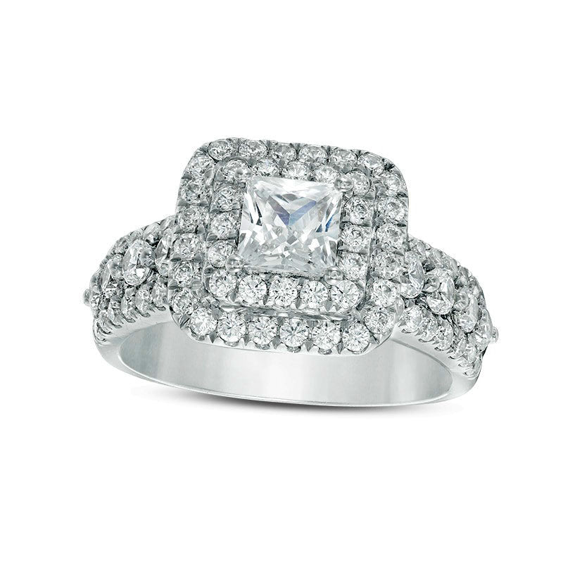 Previously Owned - 2.0 CT. T.W. Princess-Cut Natural Diamond Double Frame Multi-Row Engagement Ring in Solid 14K White Gold