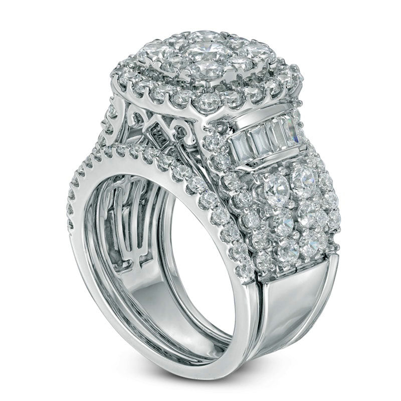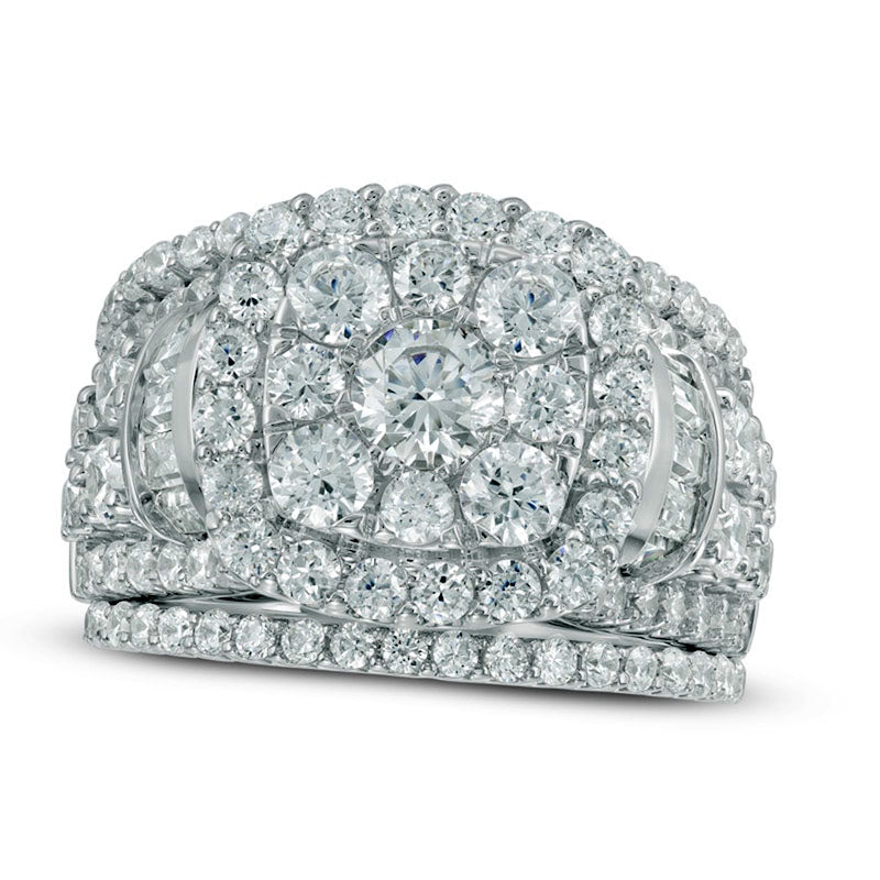Previously Owned - 4 CT. T.W. Natural Diamond Cluster Frame Three Piece Bridal Engagement Ring Set in Solid 14K White Gold