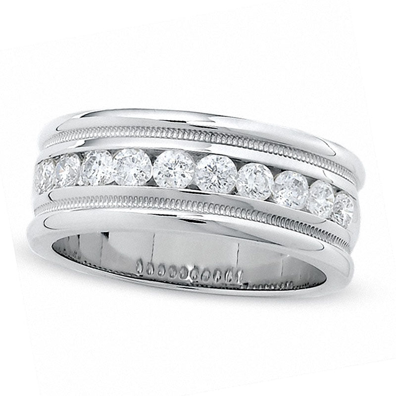 Previously Owned - Men's 1.0 CT. T.W. Natural Diamond Milgrain Band in Solid 14K White Gold