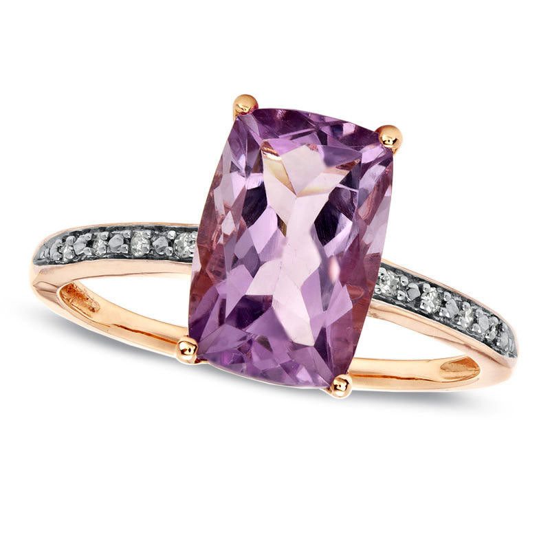 Rose de France Amethyst Ring in Solid 10K Rose Gold with Natural Diamond Accents