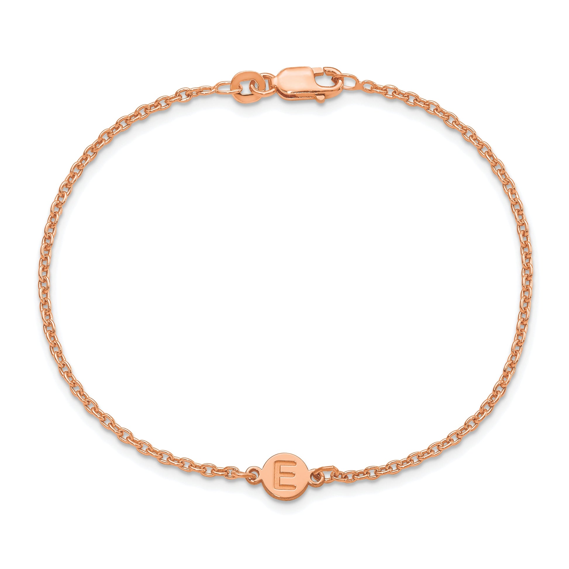 Introducing the Rose Plated Sterling Silver One Letter Bubble Bracelet, a chic piece to add personality to any style. Crafted from pure sterling silver and finished with a polished shine, this bracelet features a beautiful rose-tone plating that adds warmth and charm. Its sleek design measures 6.35 mm in length and 10.5 mm in width, making it perfect for daily wear. The personalized touch comes from a single letter charm, ideal for making a statement or gifting someone special. The lobster clasp keeps it secure on your wrist, while the rose-plated accents enhance its elegant look. The Rose Plated Sterling Silver One Letter Bubble Bracelet combines quality and style, making it a must-have accessory.