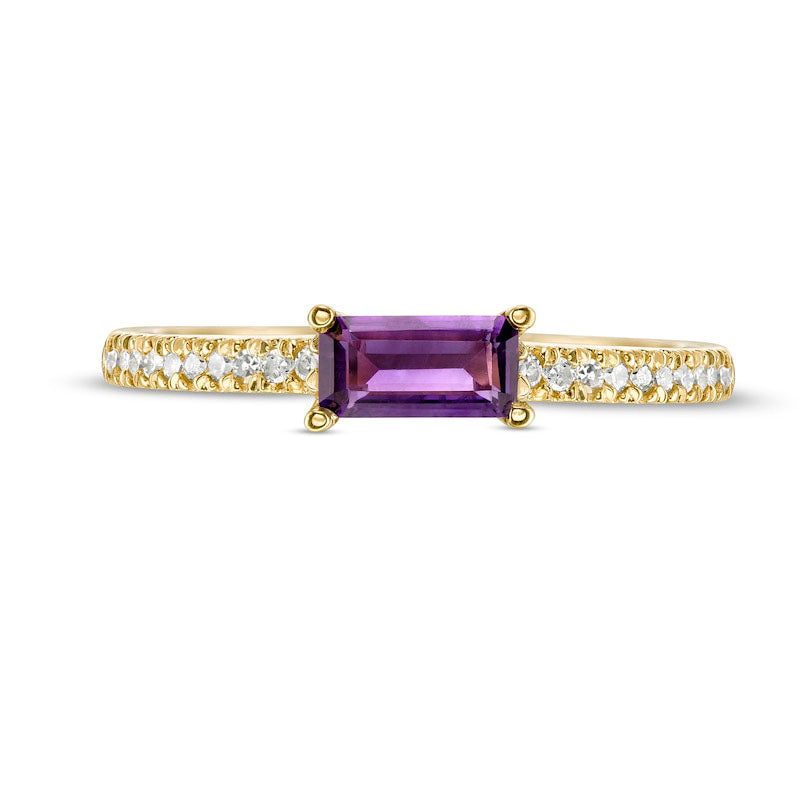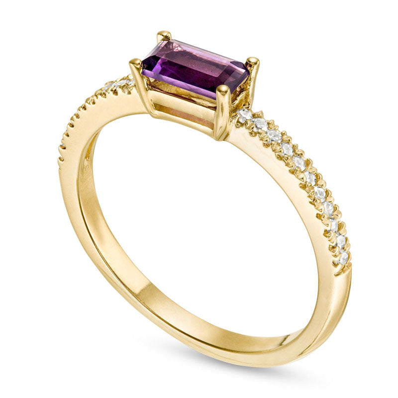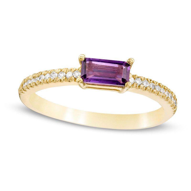 Sideways Baguette Amethyst and 0.10 CT. T.W. Natural Diamond Stackable Ring in Solid 10K Yellow Gold