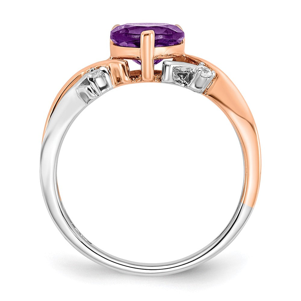Solid 14k Two-tone Heart Simulated Amethyst and CZ Ring