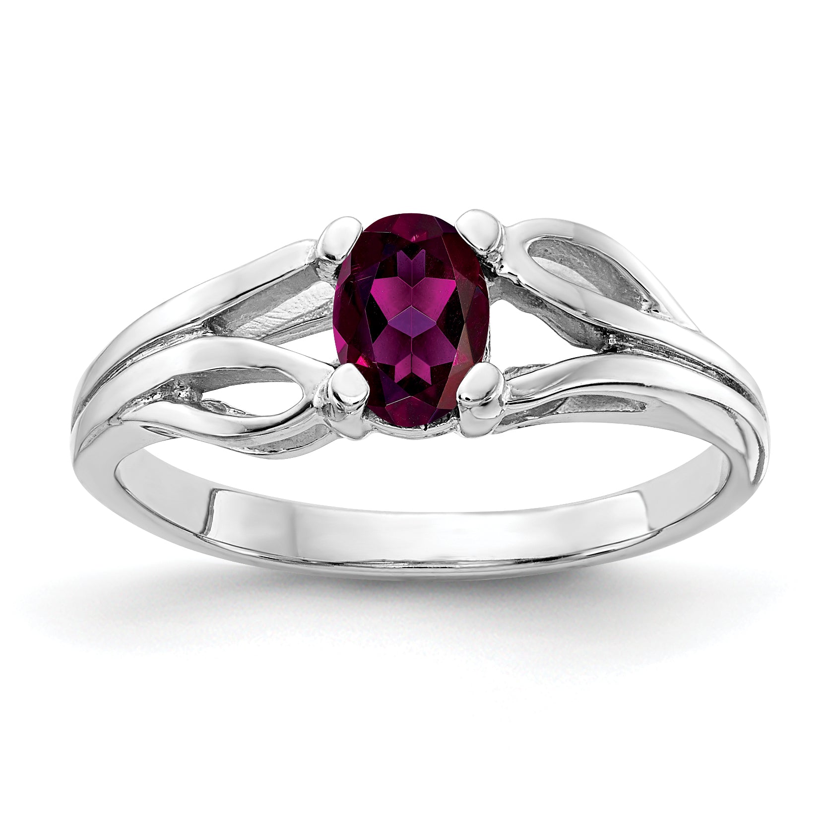Solid 14k White Gold 6x4mm Oval Rhodolite Simulated Garnet Ring