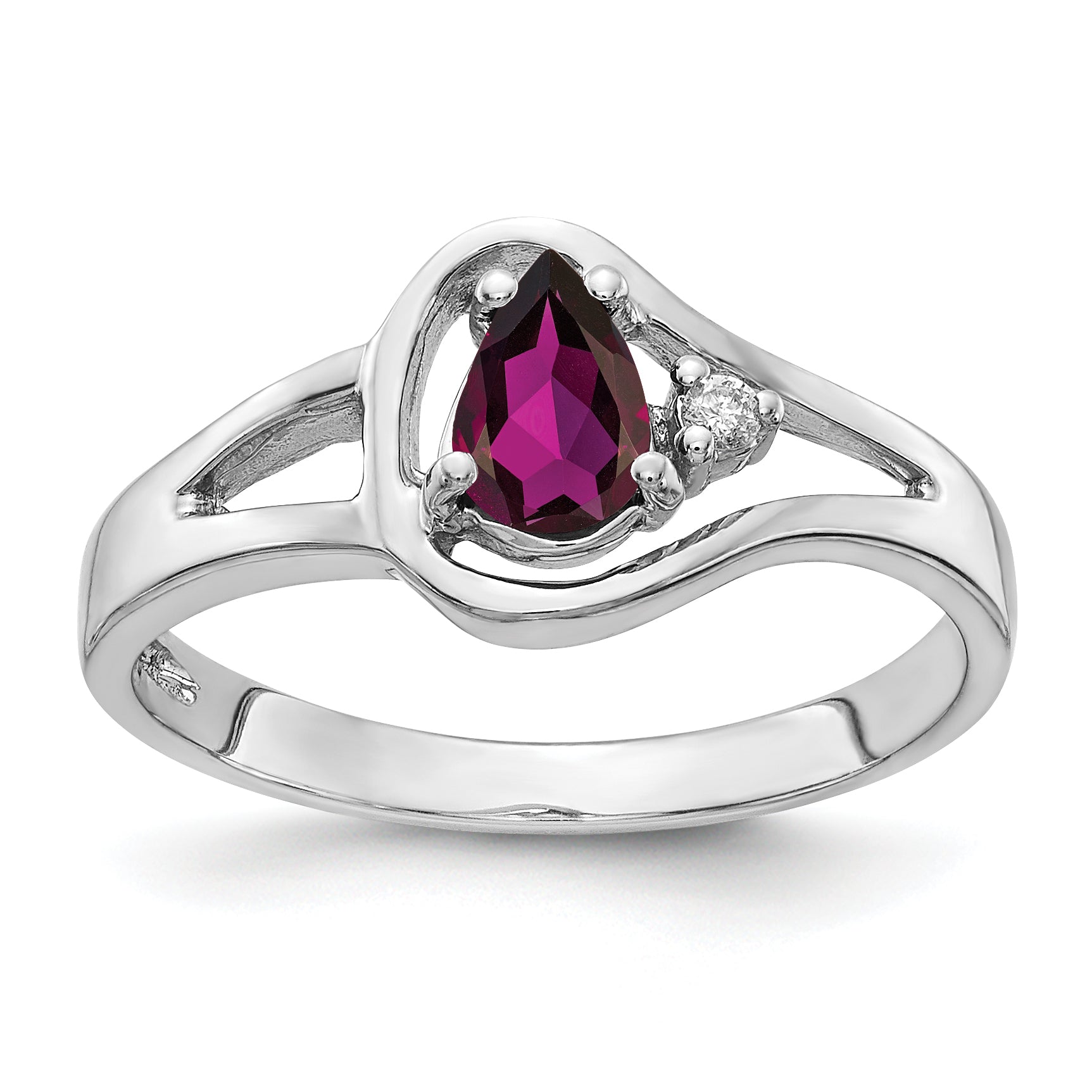 Solid 14k White Gold 6x4mm Pear Rhodolite Simulated Garnet AA CZ Ring