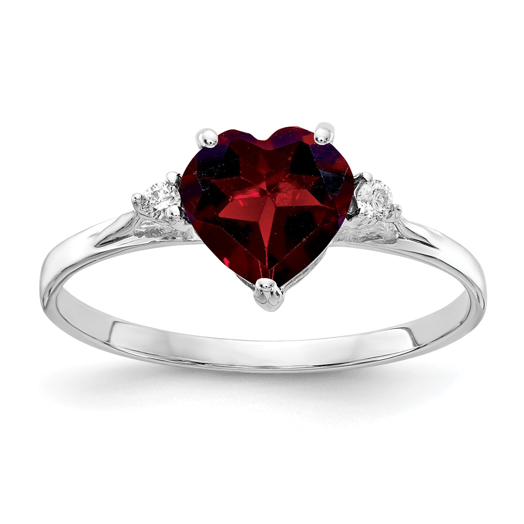 Solid 14k White Gold 7mm Heart Simulated Garnet AAA CZ Ring