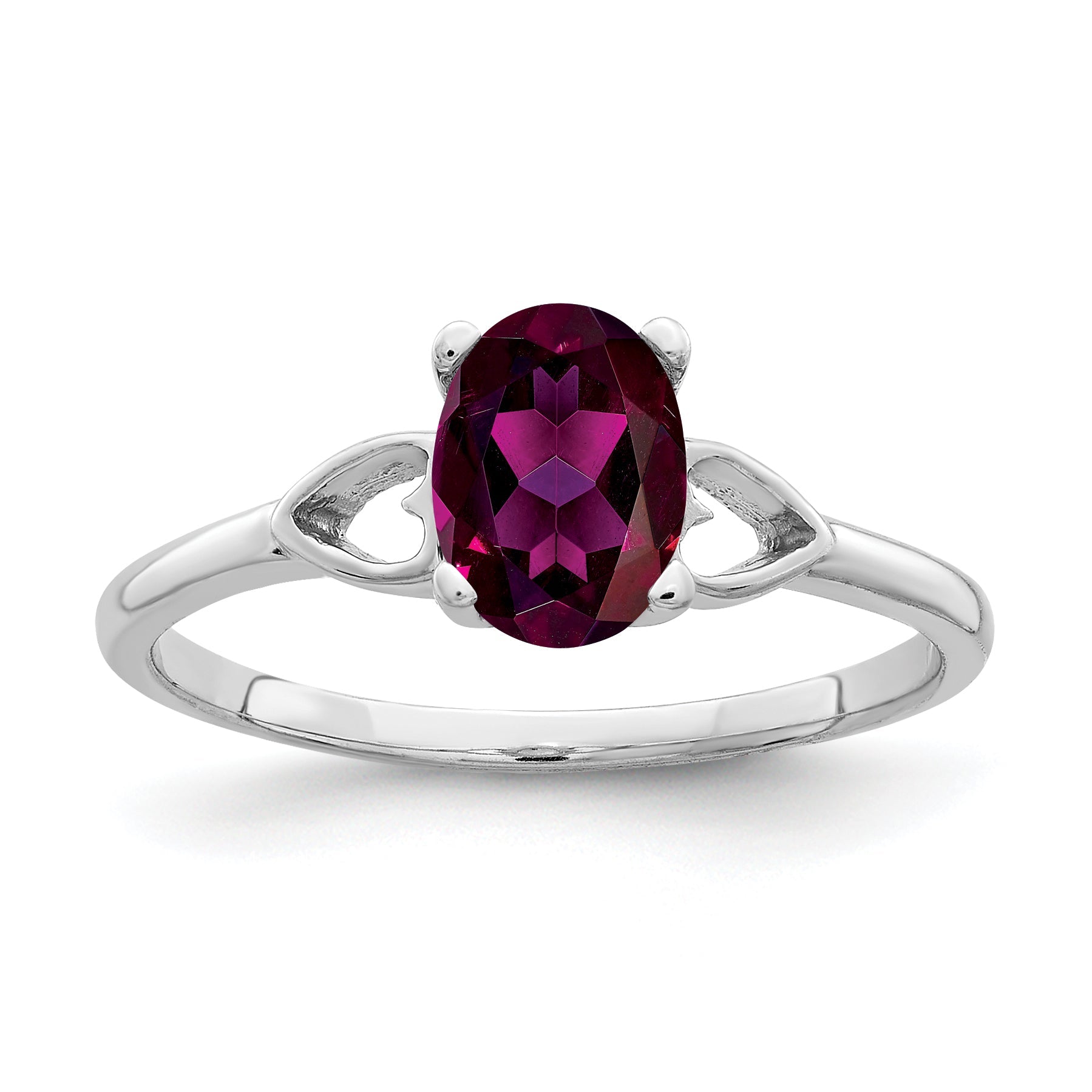 Solid 14k White Gold 7x5mm Oval Rhodolite Simulated Garnet Ring
