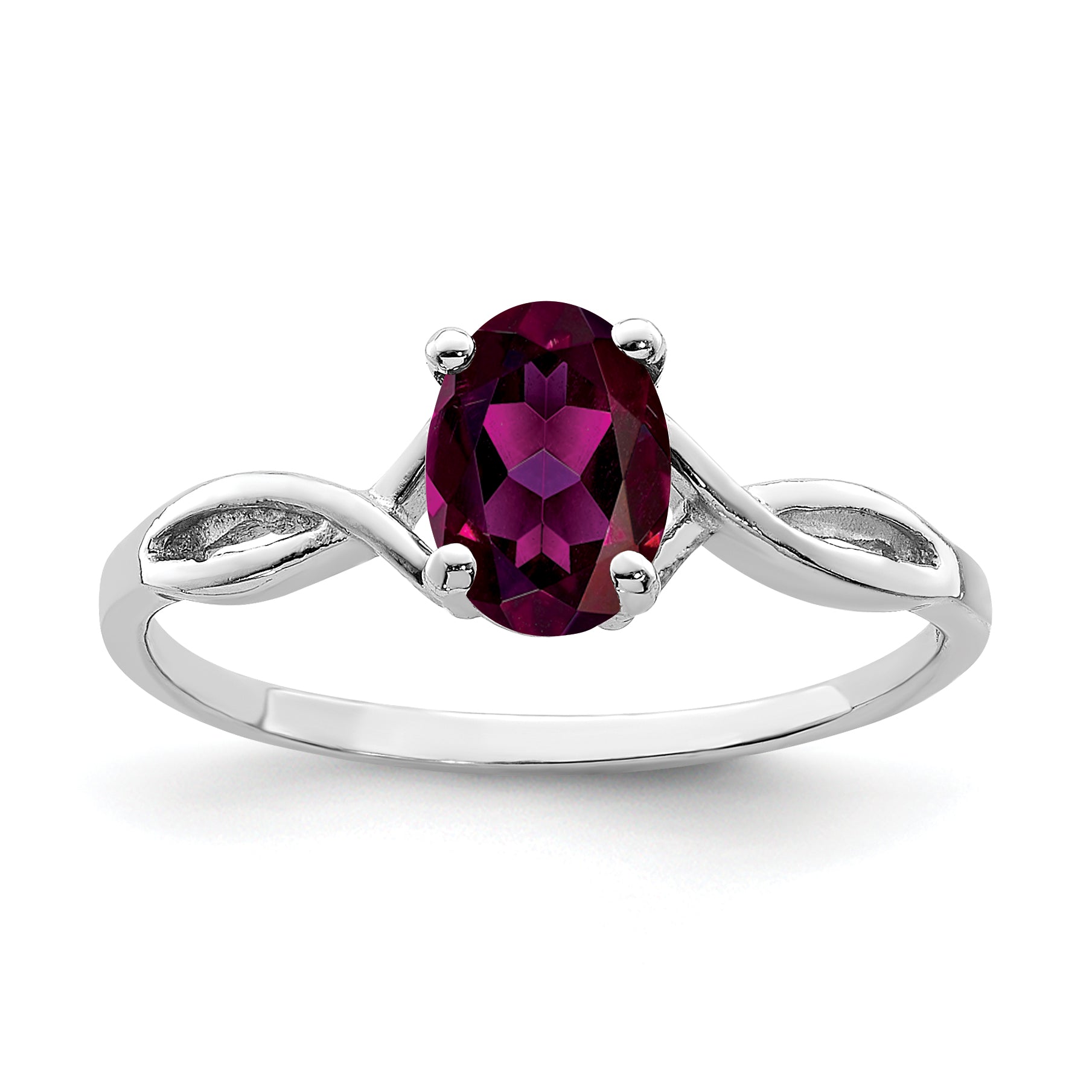 Solid 14k White Gold 7x5mm Oval Rhodolite Simulated Garnet Ring