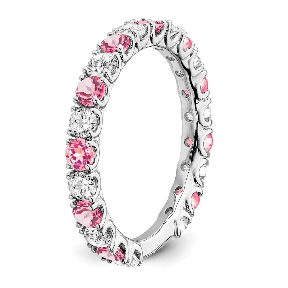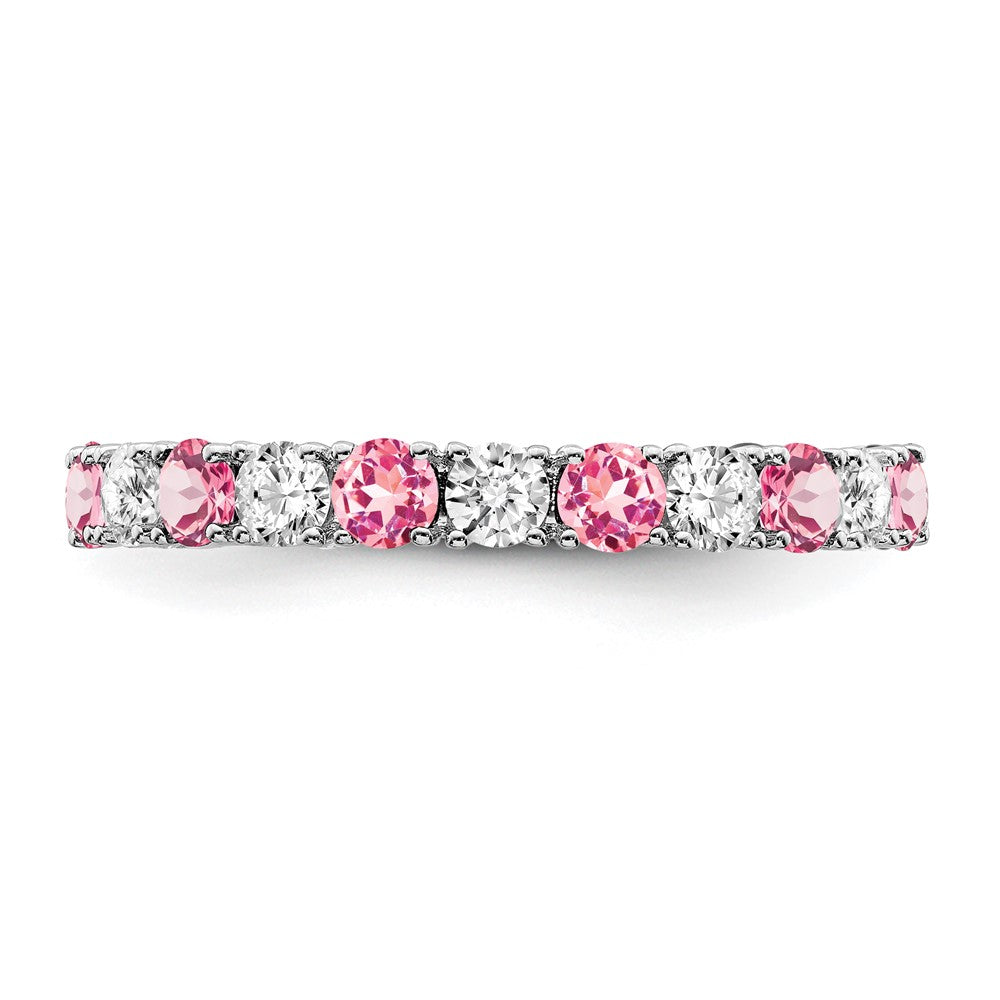 Solid 14k White Gold Created PinK Simulated Sapphire and CZ Band