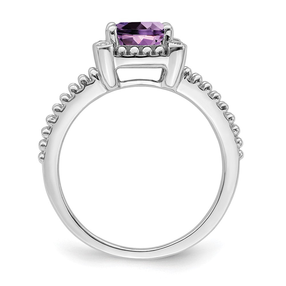 Solid 14k White Gold Cushion Simulated Amethyst and CZ Ring
