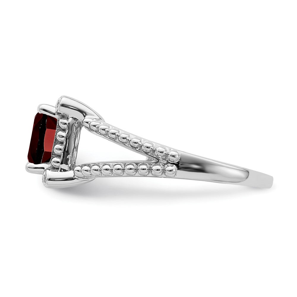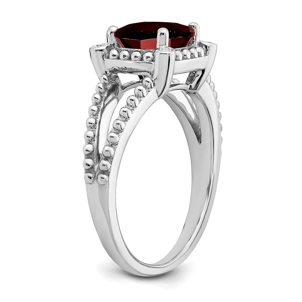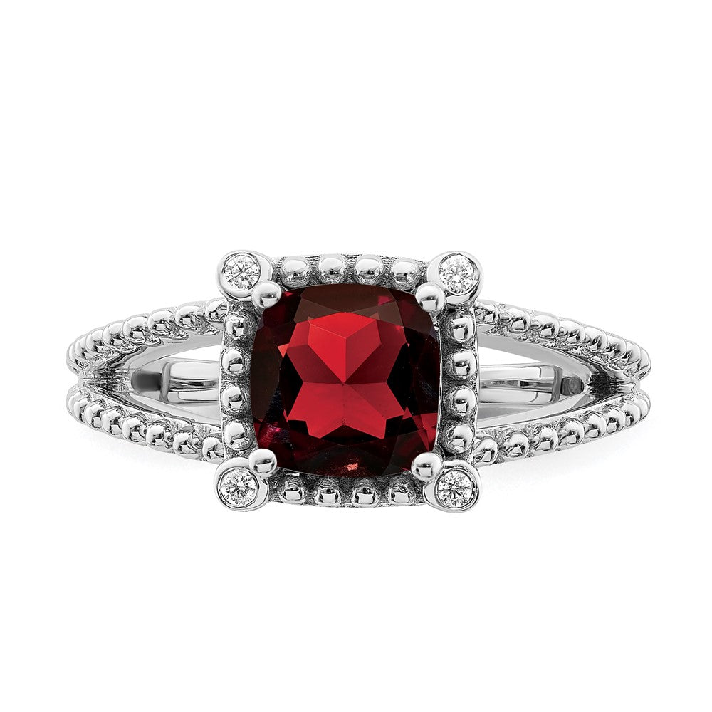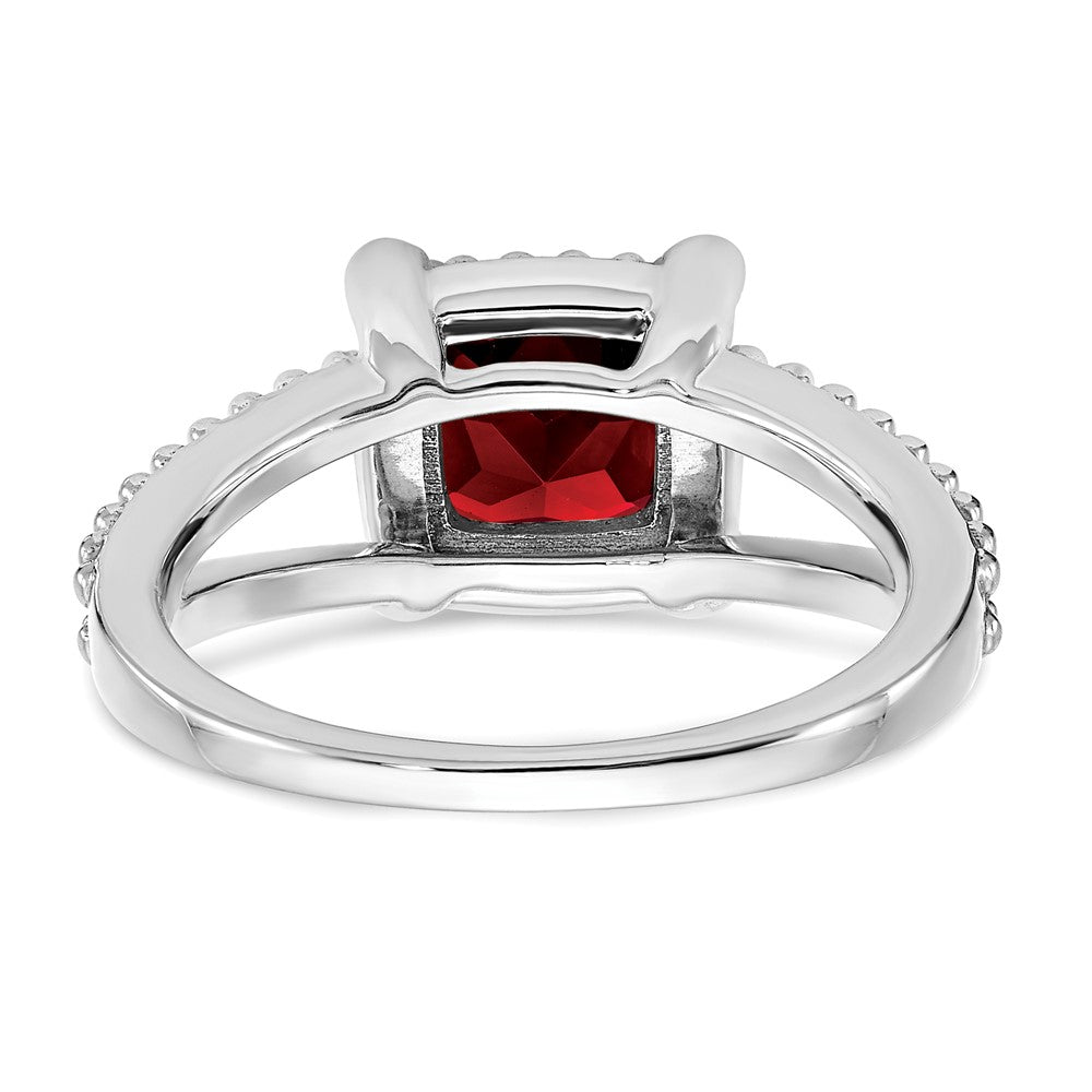 Solid 14k White Gold Cushion Simulated Garnet and CZ Ring