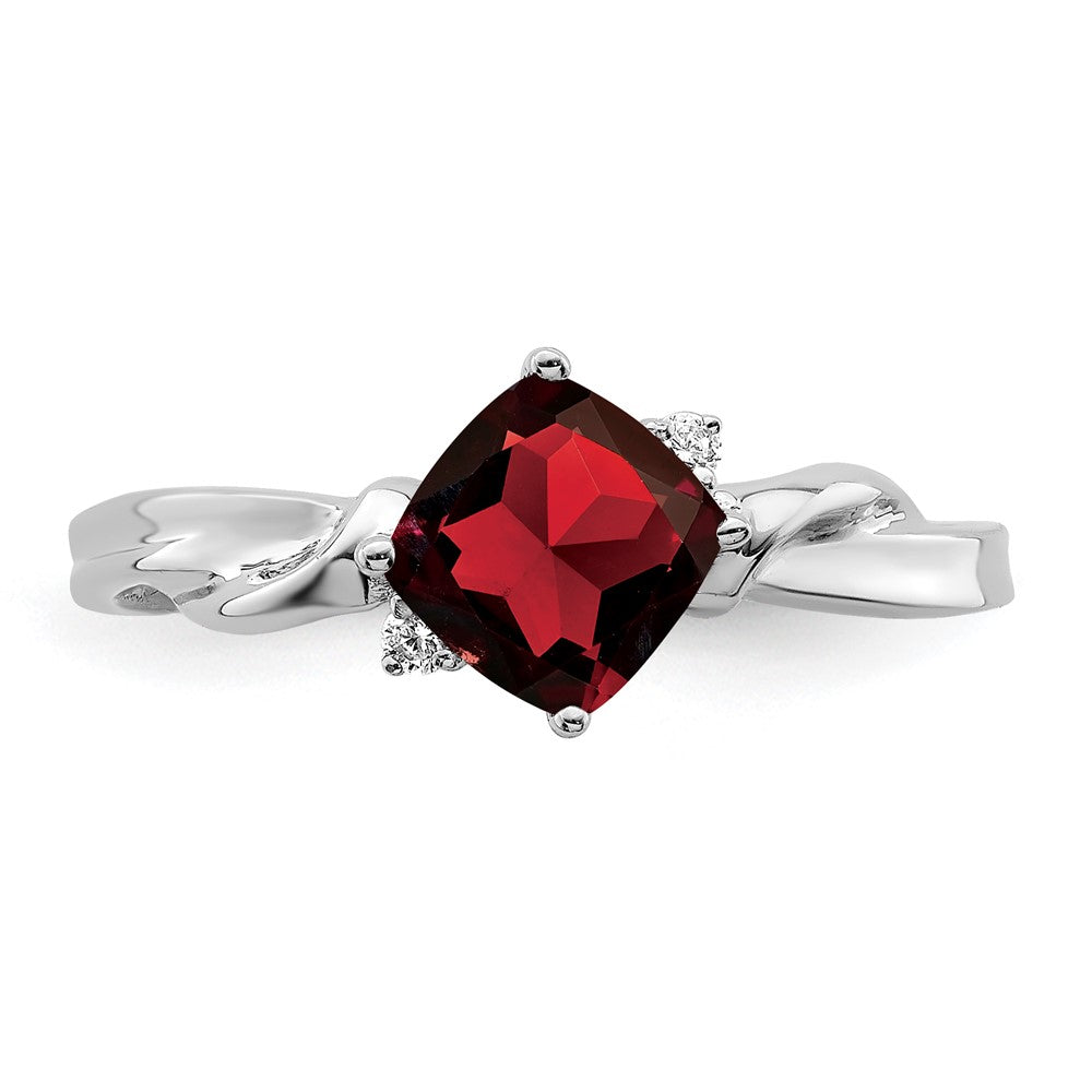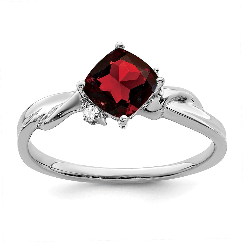 Solid 14k White Gold Cushion Simulated Garnet and CZ Ring