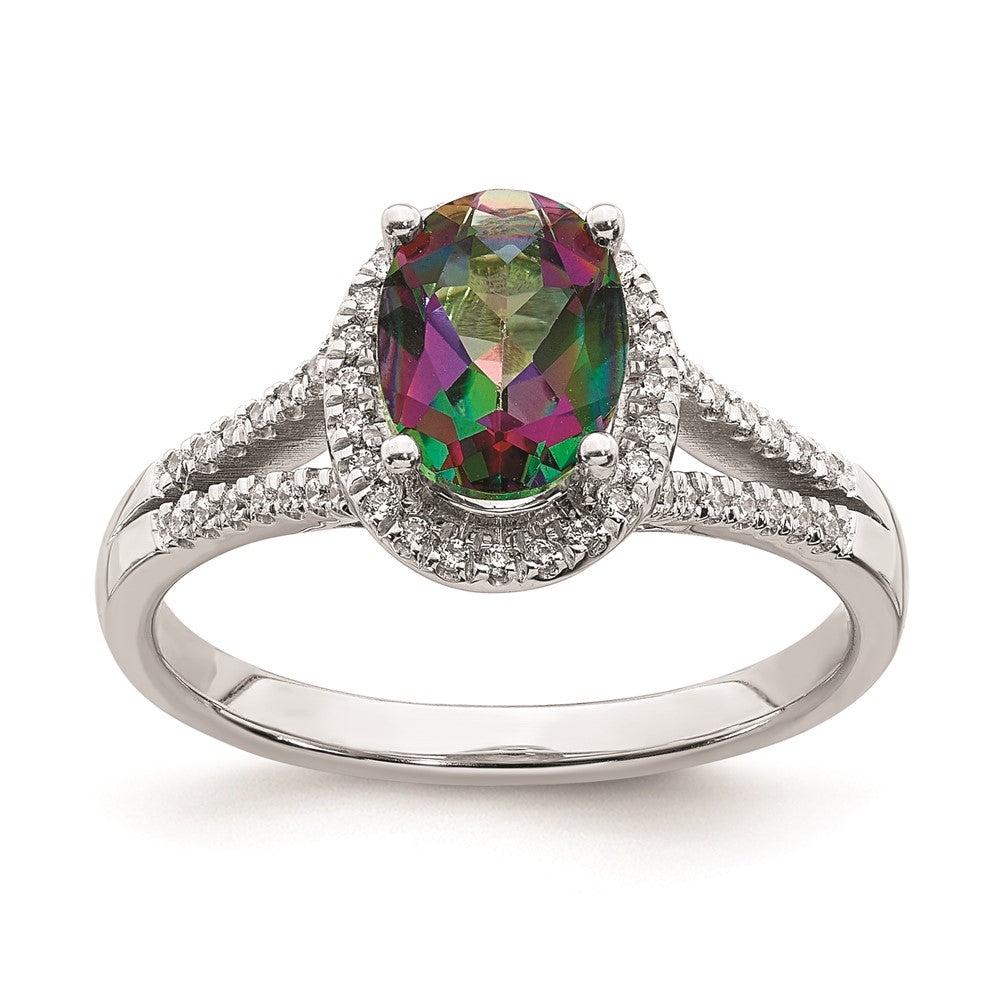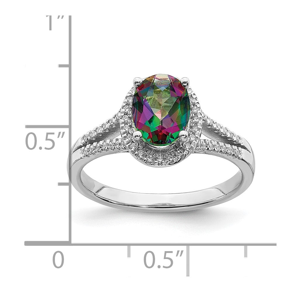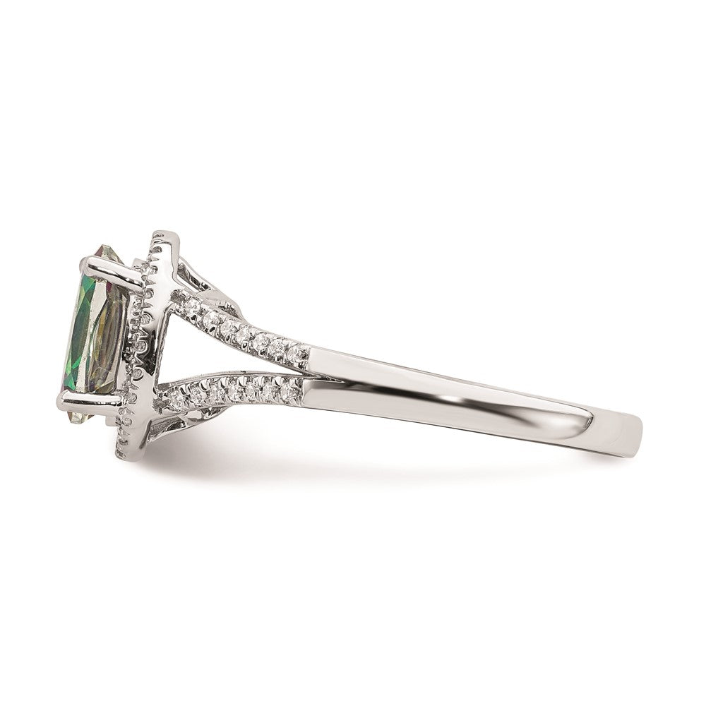 Solid 14k White Gold Mystic Fire Simulated CZ Halo Complete Engagement Ring