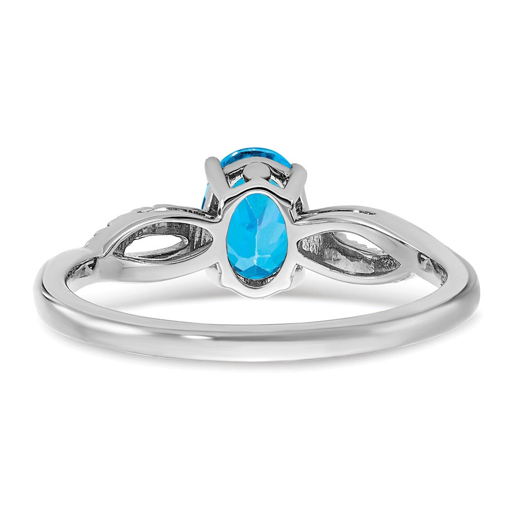 Solid 14k White Gold Oval Simulated Blue Topaz and CZ Ring