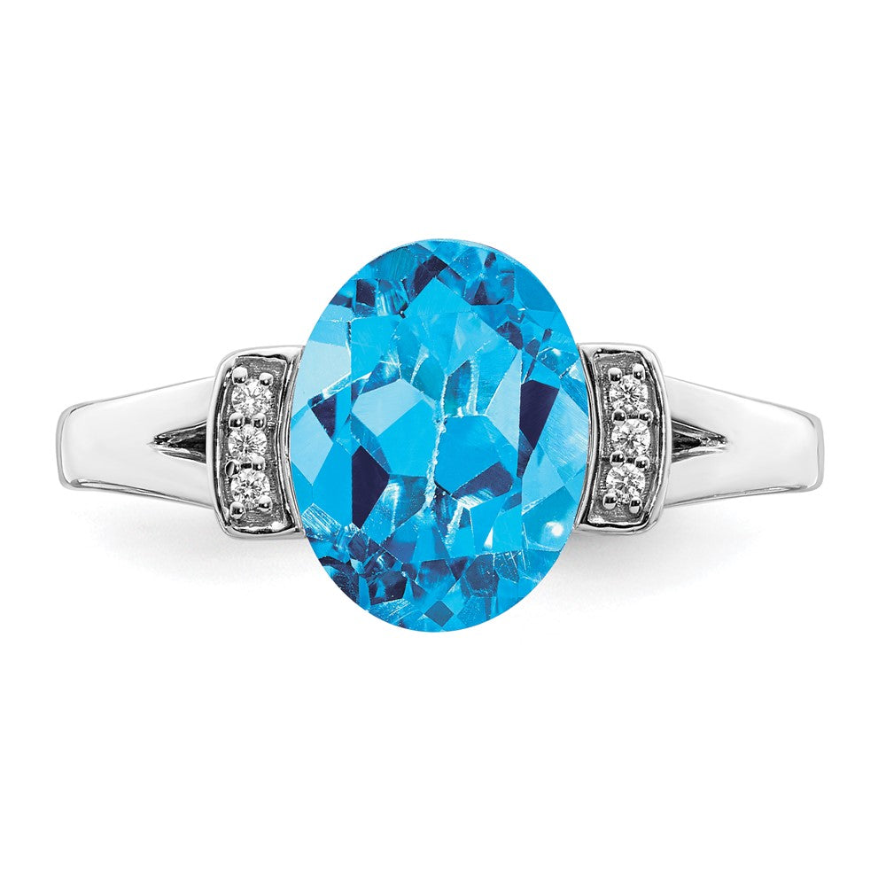Solid 14k White Gold Oval Simulated Blue Topaz and CZ Ring