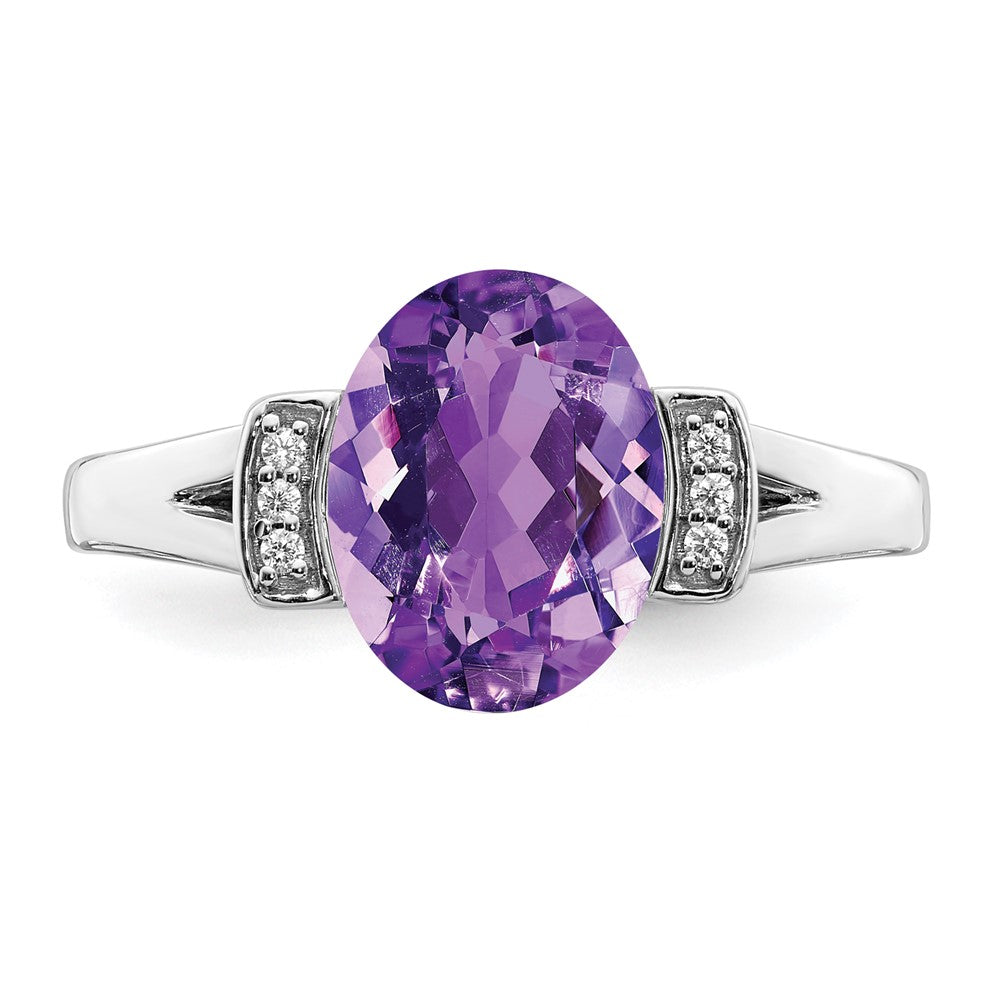 Solid 14k White Gold Oval Simulated Amethyst and CZ Ring