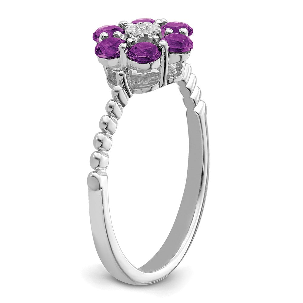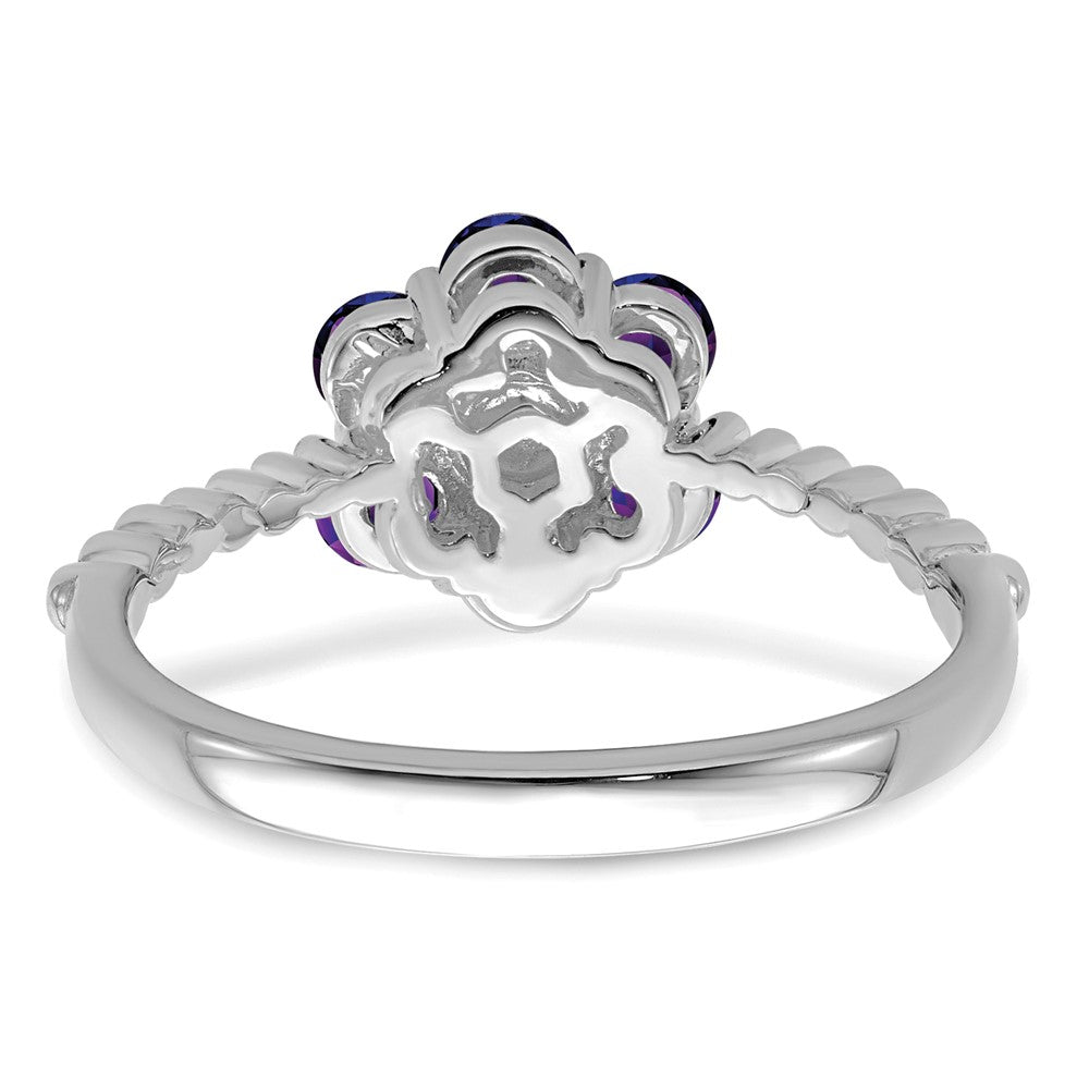 Solid 14k White Gold Simulated Amethyst and CZ Floral Ring