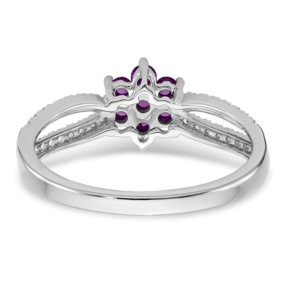 Solid 14k White Gold Simulated Amethyst and CZ Floral Ring