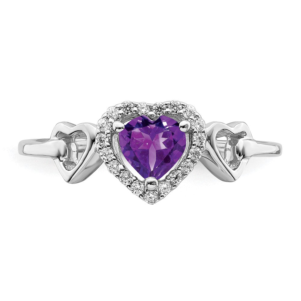 Solid 14k White Gold Simulated Amethyst and CZ Heart Ring