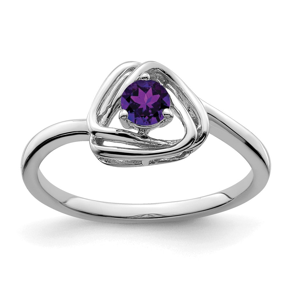 Solid 14k White Gold Simulated Amethyst Triangle Ring