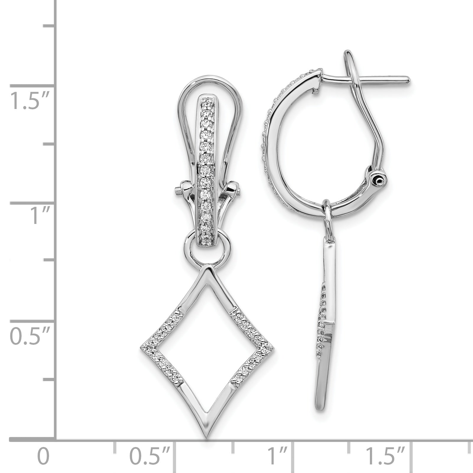These elegant dangle earrings are crafted from high-quality solid 14k white gold and are adorned with sparkling simulated CZ stones. The omega back ensures a secure and comfortable fit, making them perfect for everyday wear or special occasions. Add a touch of sophistication to any outfit with these stunning earrings.