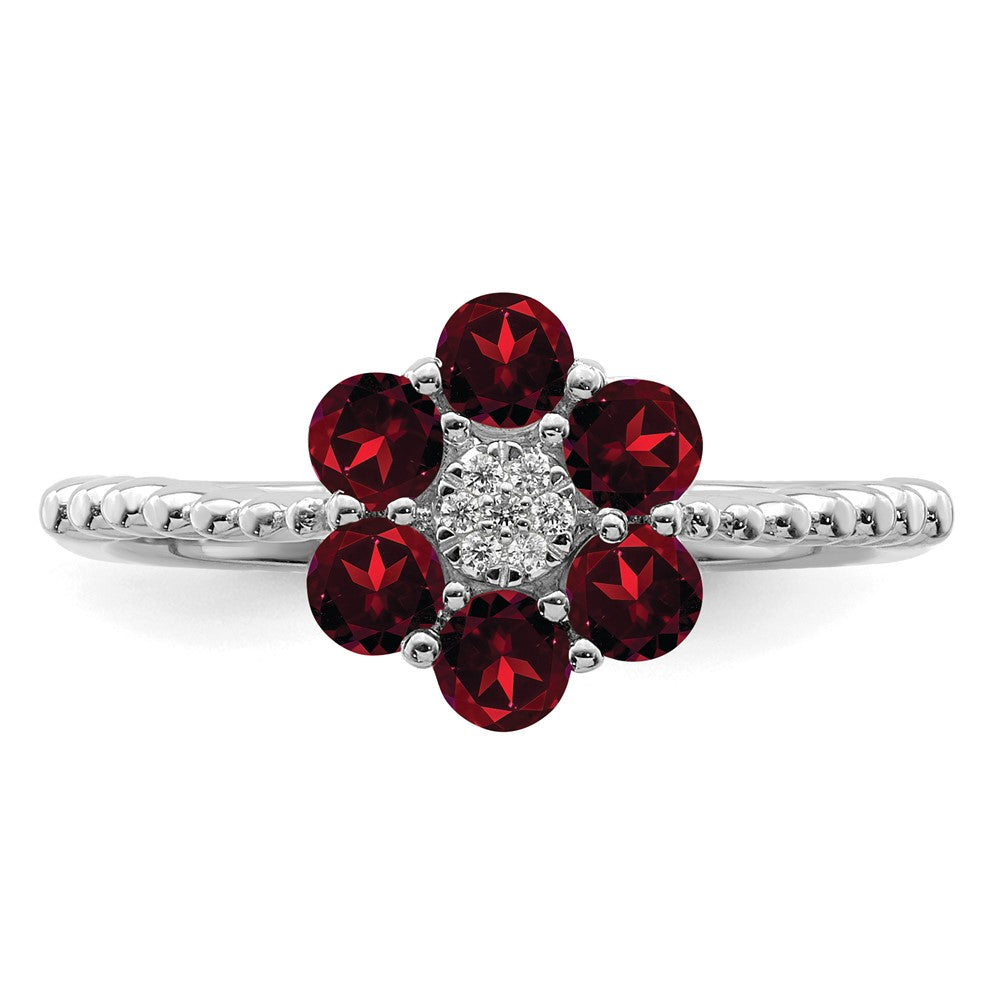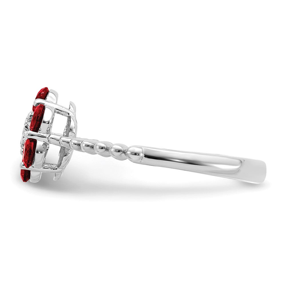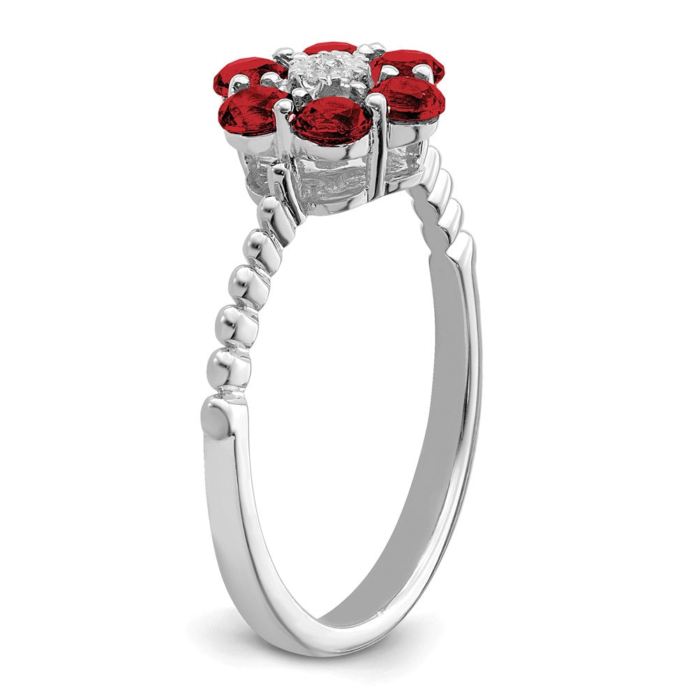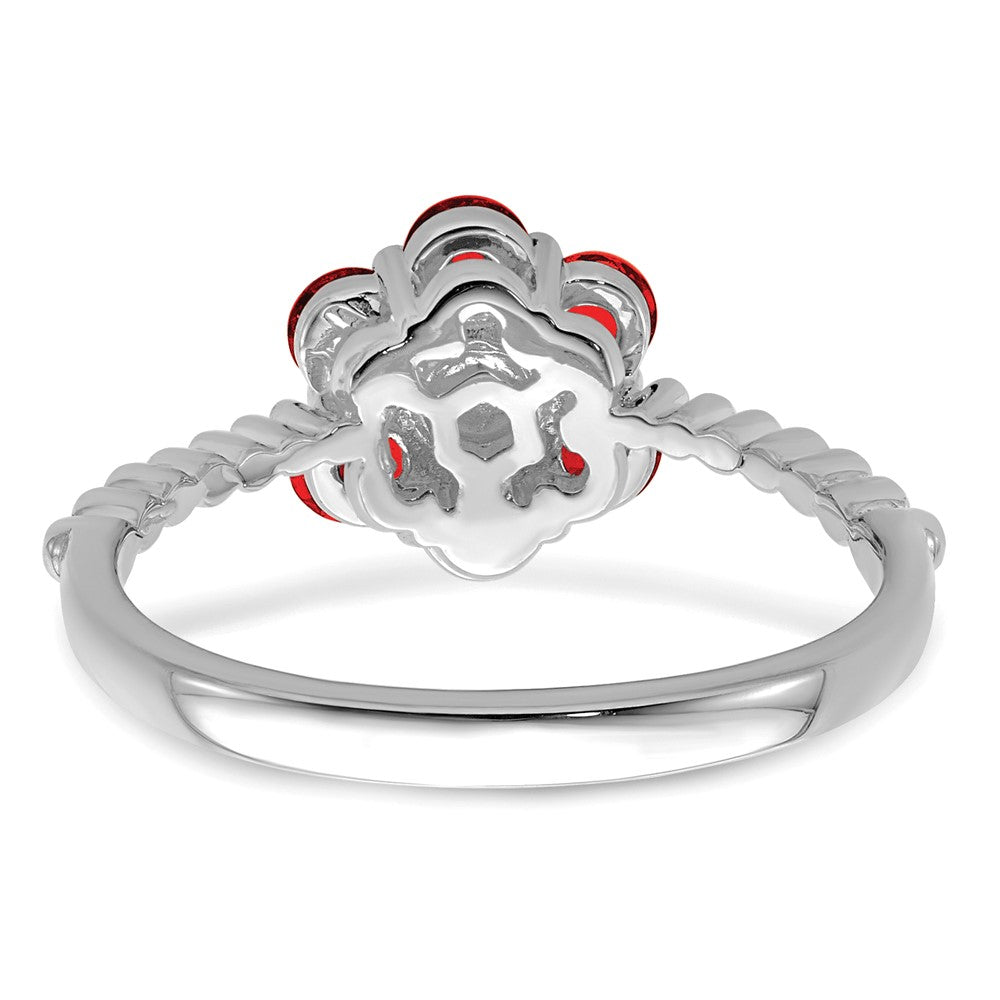 Solid 14k White Gold Simulated Garnet and CZ Floral Ring