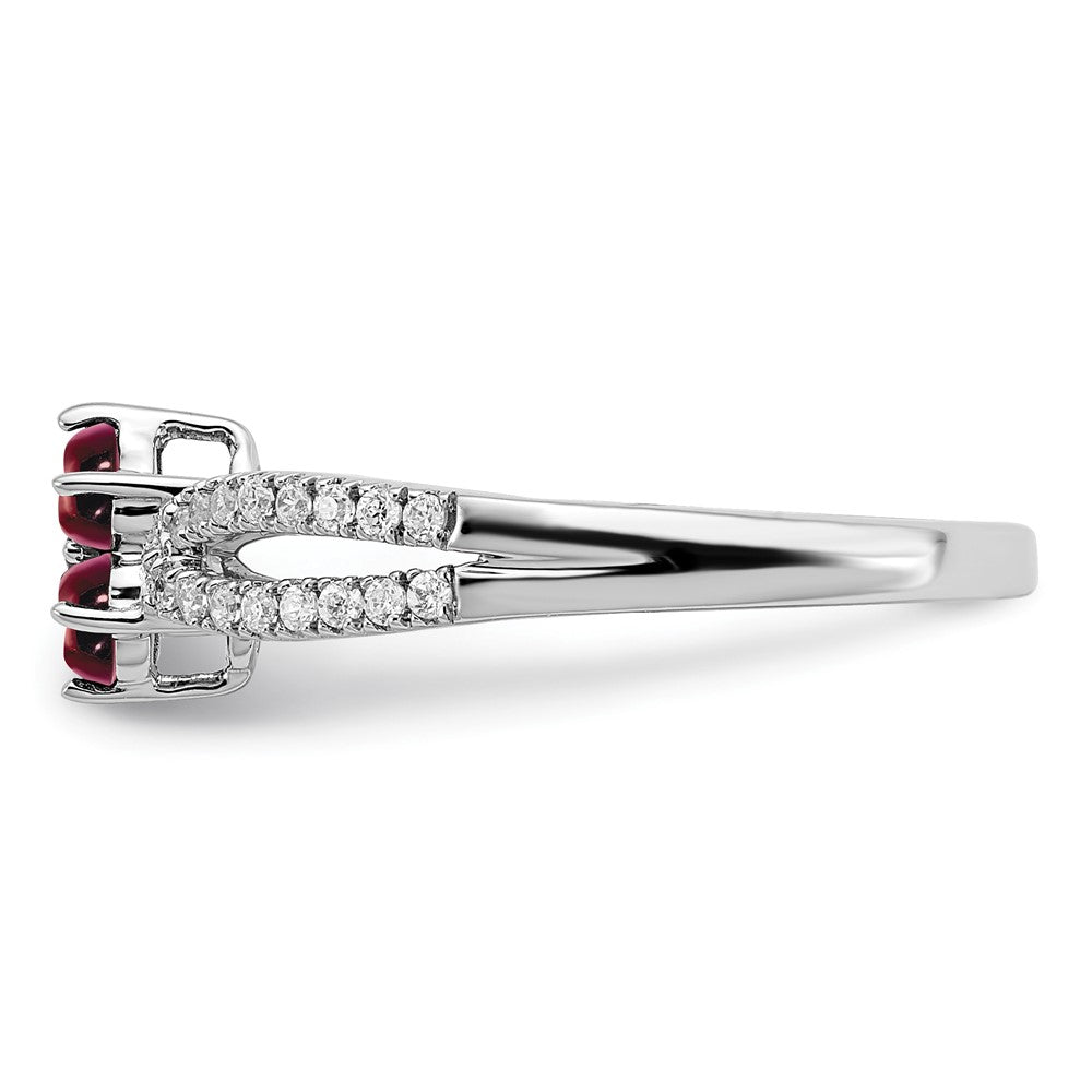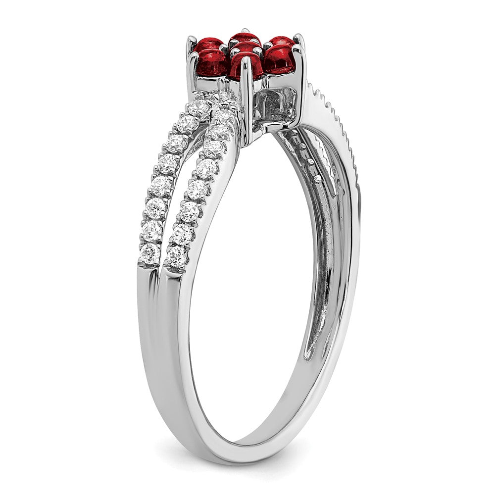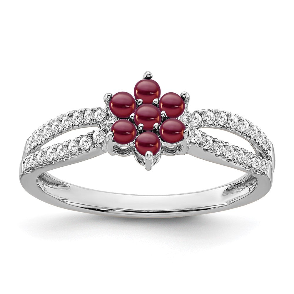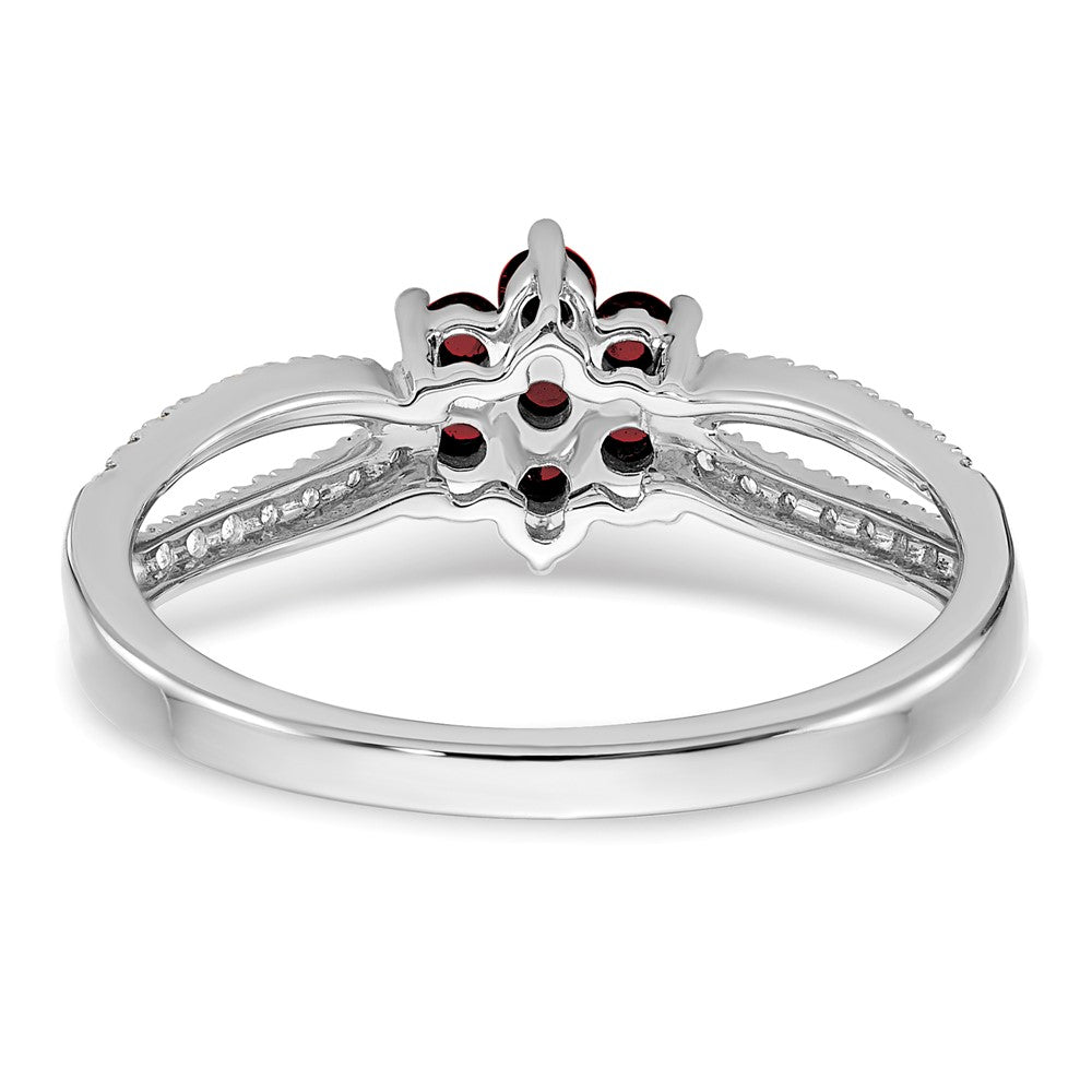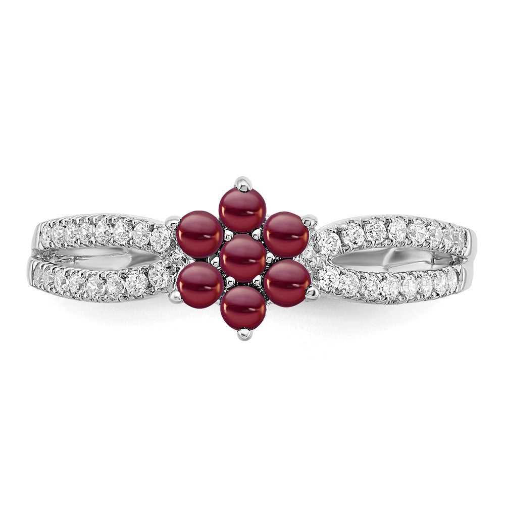 Solid 14k White Gold Simulated Garnet and CZ Floral Ring